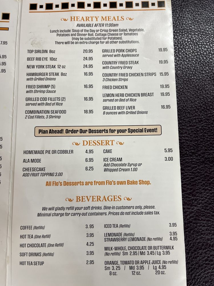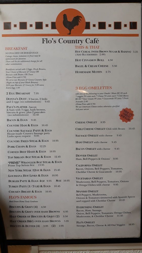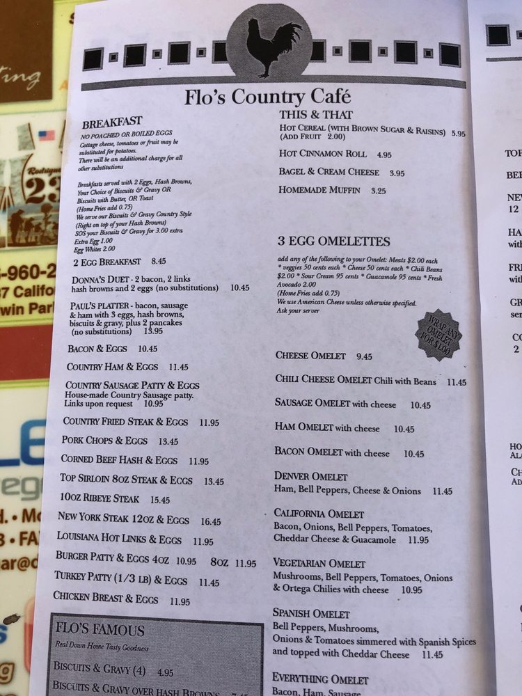 If you're on the hunt for a charming cafe with a cozy atmosphere and delicious American cuisine, look no further than Flo's Country Cafe in Cherry Valley, CA. This family-owned gem offers a wide range of menu items, from hearty breakfast options like chicken fried steak and biscuits and gravy to tasty lunch specials like omelets and French toast combos. Customers rave about the generous portions and the friendly service, making it a go-to spot for locals and visitors alike. With vegetarian options, wheelchair accessibility, and a welcoming ambiance, Flo's Country Cafe is the perfect destination for a relaxing meal with friends and family. Don't miss out on their daily specials and be sure to try their famous cinnamon roll French toast for a sweet treat. Plan your visit to Flo's today and experience the heartwarming flavors of homemade dishes served with a smile.